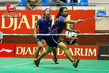 Melisa Andesti (PB Djarum) berusaha mengembalikan shuttlecock ke arah Made Deya Surya (Pelatprov Bali).