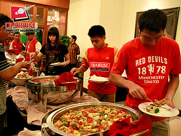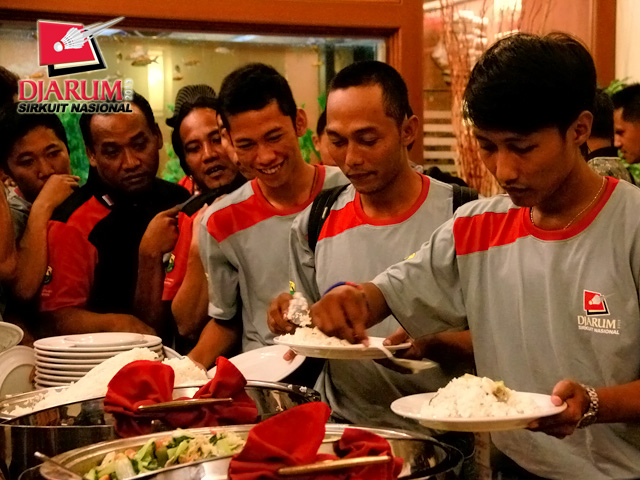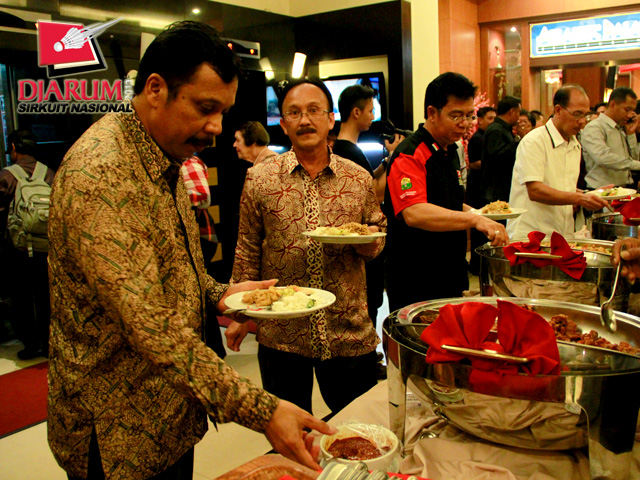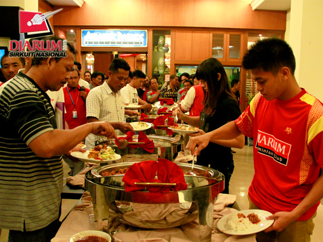 Atlet PB Djarum saat mengambil makan malam dalam acara Gala Dinner di Hotel Pasifik.