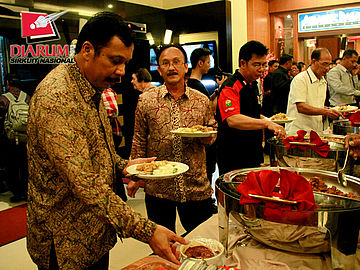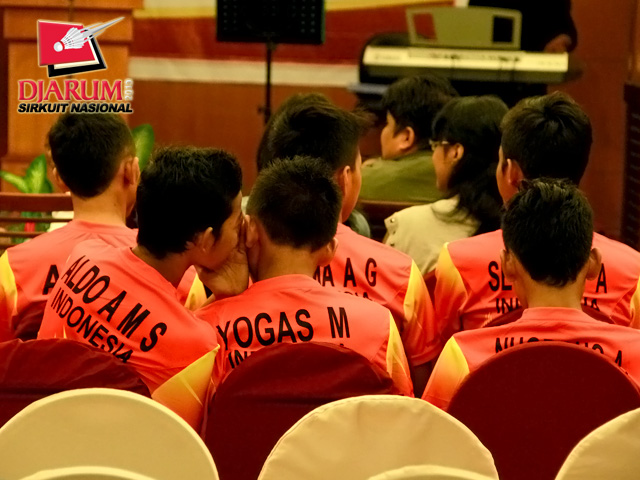 Sejumlah wasit yang Djarum Sirnas Kaltim Open 2013 saat mengantri untuk menyantap makan malam di Hotel Pasifik.