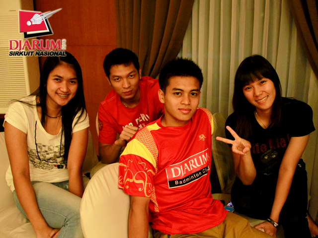 Empat pemain PB Djarum berpose sebelum acara Gala Dinner dimulai.