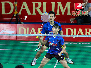 Seiko Wahyu/Nurbeta Kwanrico (PB Djarum) berhasil menghadang serangan dari pasangan Nur Wahid/Heti Nugraheni (Jaya Raya Suryanaga).