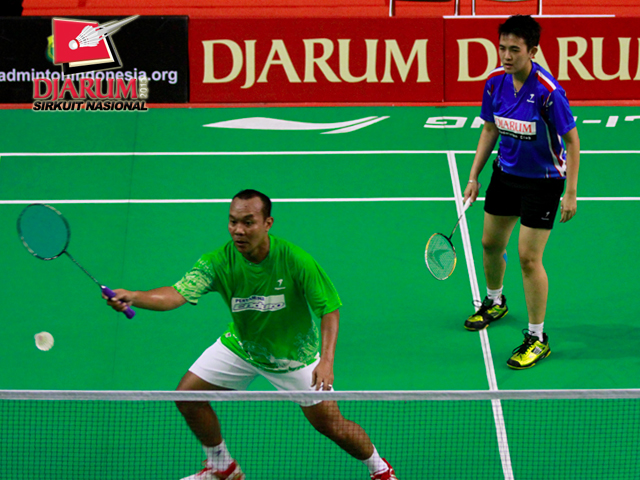 Trikusharjanto / Vita Marisa menerima serve lawan.