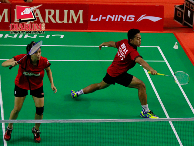 Seiko Wahyu Kusdianto / Nurbela Kwanrico (Djarum Kudus) menerima serve lawan.