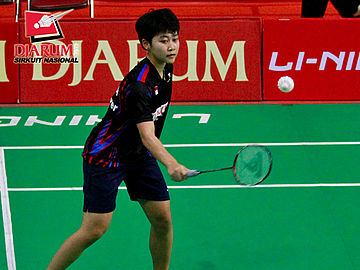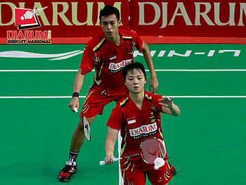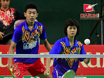 Abu Bakar / Febriani Endar Kusumawati (Djarum Kudus) serve.