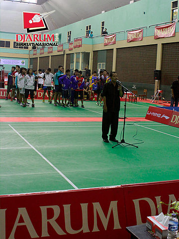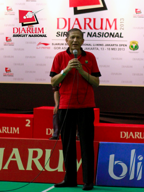 Wakil ketua umum PB PBSI Fuad Basya memberikan sambutan saat penutupan Djarum Sirkuit Nasional Jakarta Open 2013.