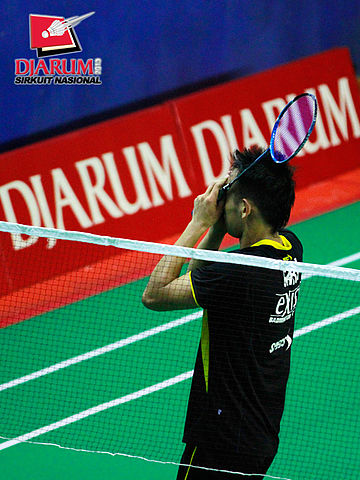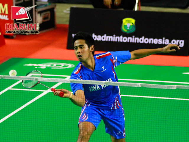 Rudi Cahyadi (PB Djarum) menyambut serve dari Wahyu Triansyah (Bank Sumsel-Babel).