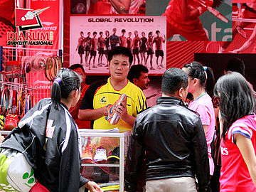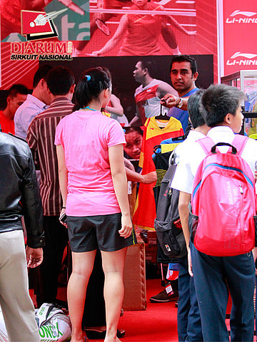 Beberapa pengunjung Djarum Sirkuit Nasional Li-Ning 2013 saat melihat-lihat di booth Li-Ning.