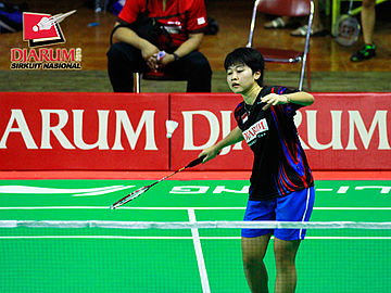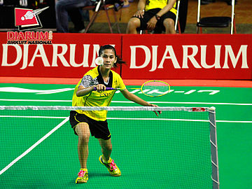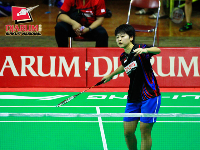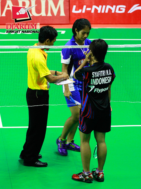 Febrita Adisthya (Mutiara Bandung) sebelum bertanding dengan Syafitri Nur Azizah (PB Djarum).