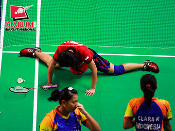 Jessica Shonan/Chintia Rhizta (PB Djarum) harus jatuh bangun meladeni pasangan Clara Titi/Desaula Gendi (Pusdiklat Jaya Raya).