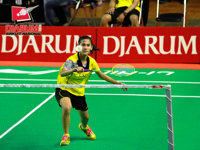 Ekspresi Rena Asela (PB Djarum) saat berhasil mencuri angka dari Priskila Siahaya (Exist).