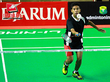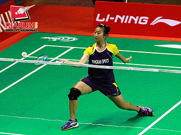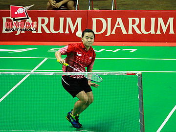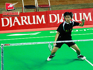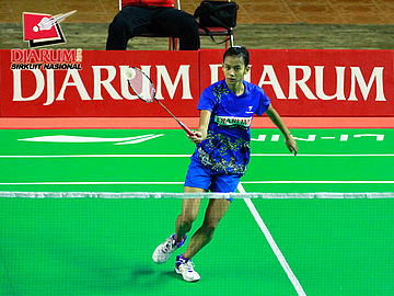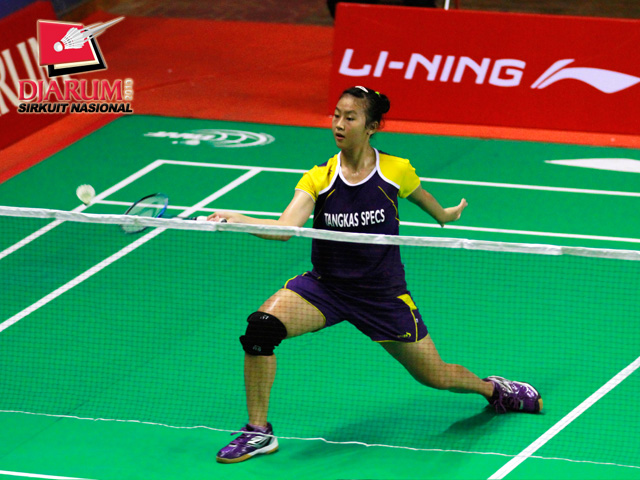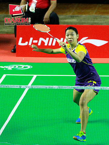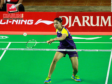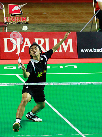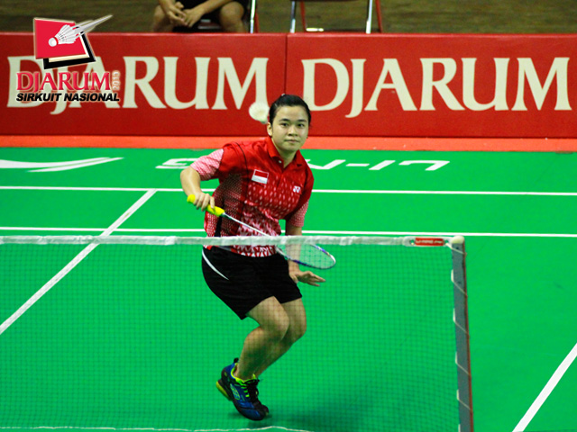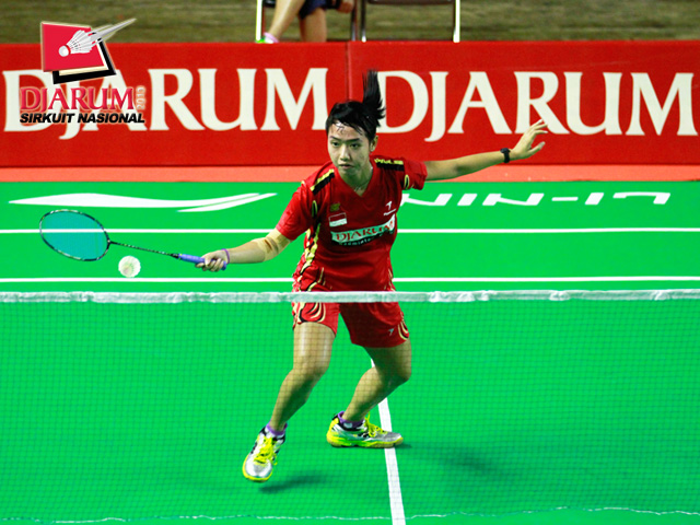 Ana Rovita (PB Djarum) mengembalikan kok ke arah Elizabeth Purwaningtyas (SGS PLN).
