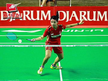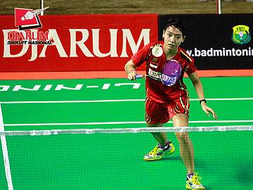 Dinar Dyah (PB Djarum) mengembalikan kok ke arah Mutiarani (SGS PLN).