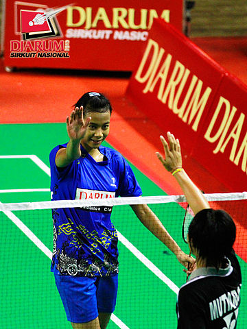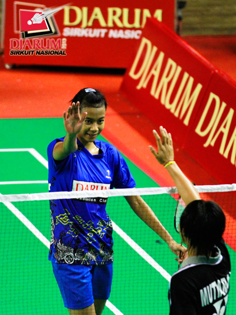 Dinar Dyah (PB Djarum) bersalaman dengan Mutiarani (SGS PLN) usai bertanding.