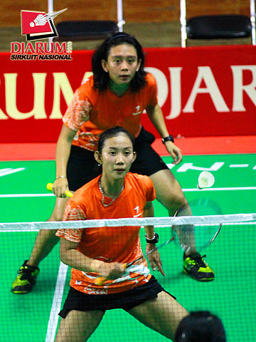 Reinard/Shinta Arum (Mutiara Bandung) mengembalikan kok ke arah pasangan Tedi Supriadi/Della Agustia (PB Djarum).