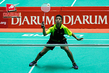 Ardiansyah Putra/Devi Tika Permatasari (Pertamina Indonesia/SGS PLN) bersiap menyambar pengembalian tanggung dari M. Asykuru/Natalia Poluakan (IPC/Tangkas Specs).