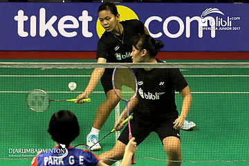 Agatha Imanuela/Siti Fadia Silva Ramadhanti (Djarum) Menghadang Pengembalian