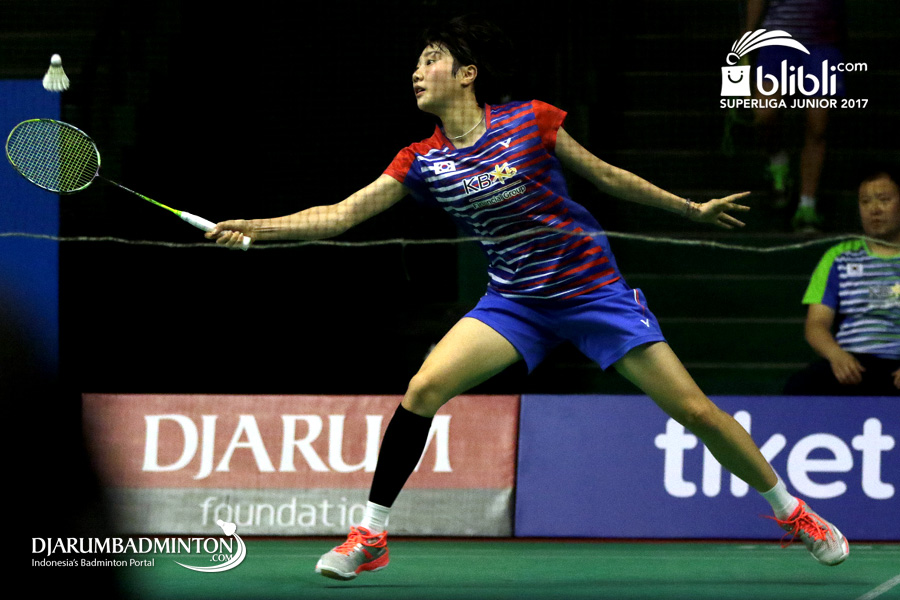 Ahn Chae Hyun (Korea) Mengembalikan Shuttlecock