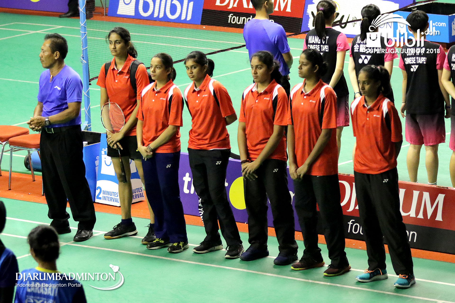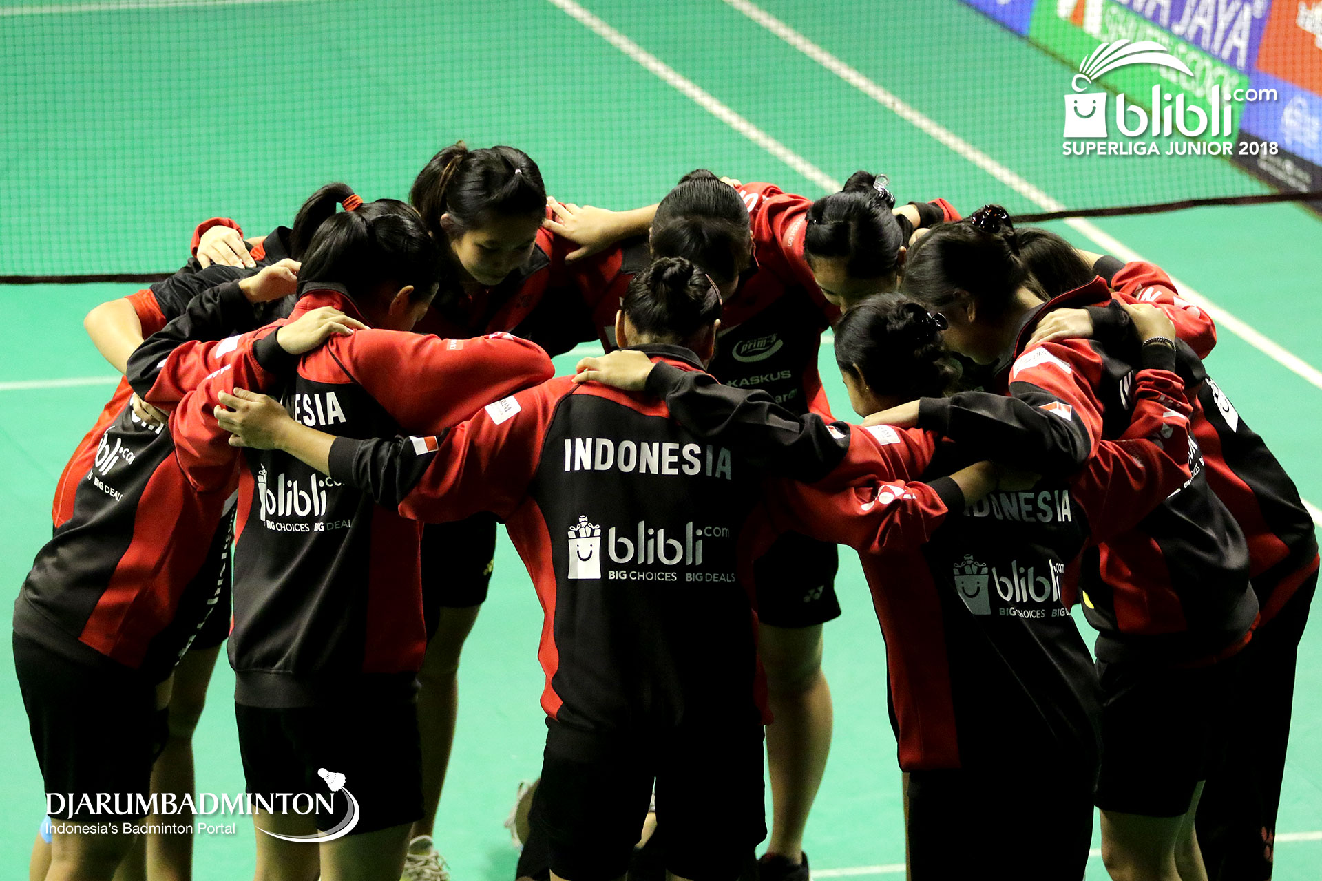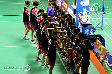 Tim putri U19 PB. Djarum berkumpul sebelum bertanding