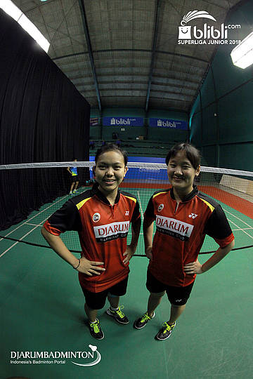 Agatha Imanuela/Siti Fadia Silva Ramadhanti (PB. DJARUM) berpose saat sebelum pemanasan