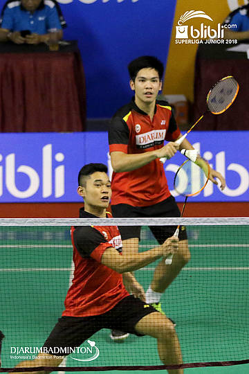 Daniel Marthin/Leo Rollycarnando (PB. DJARUM) bersiap menyambar pengembalian