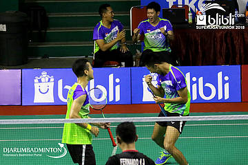 Daniel Marthin/Leo Rollycarnando (PB. DJARUM) menahan serangan