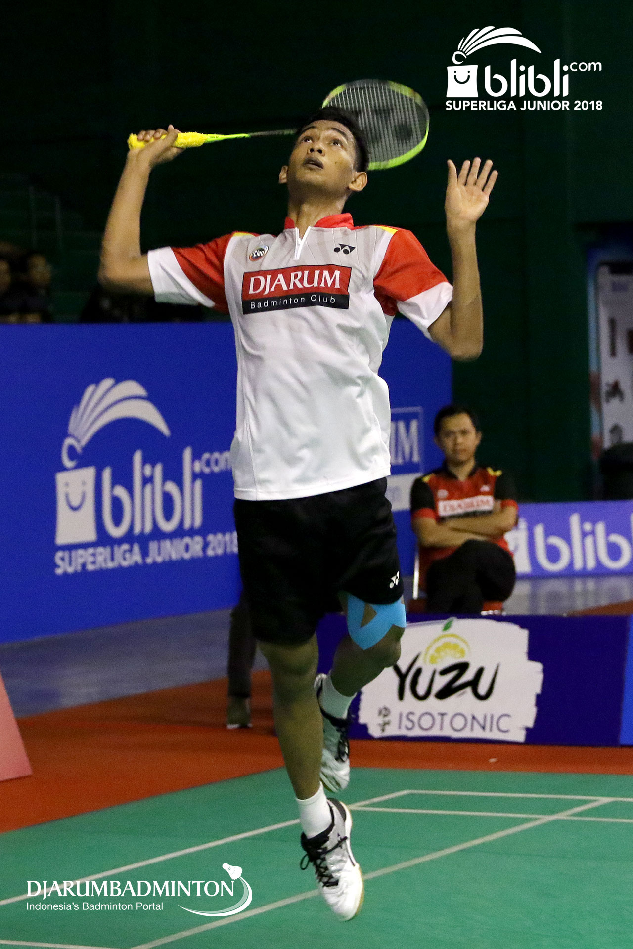 Muh. Asqar Harianto (PB. DJARUM) bersiap menyambut shuttlecock