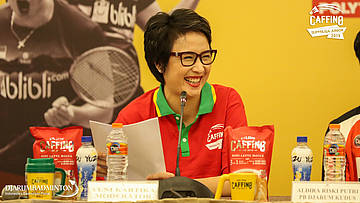 Yuni Kartika di saat Press Conerence Caffino Superliga Junior 2019