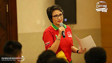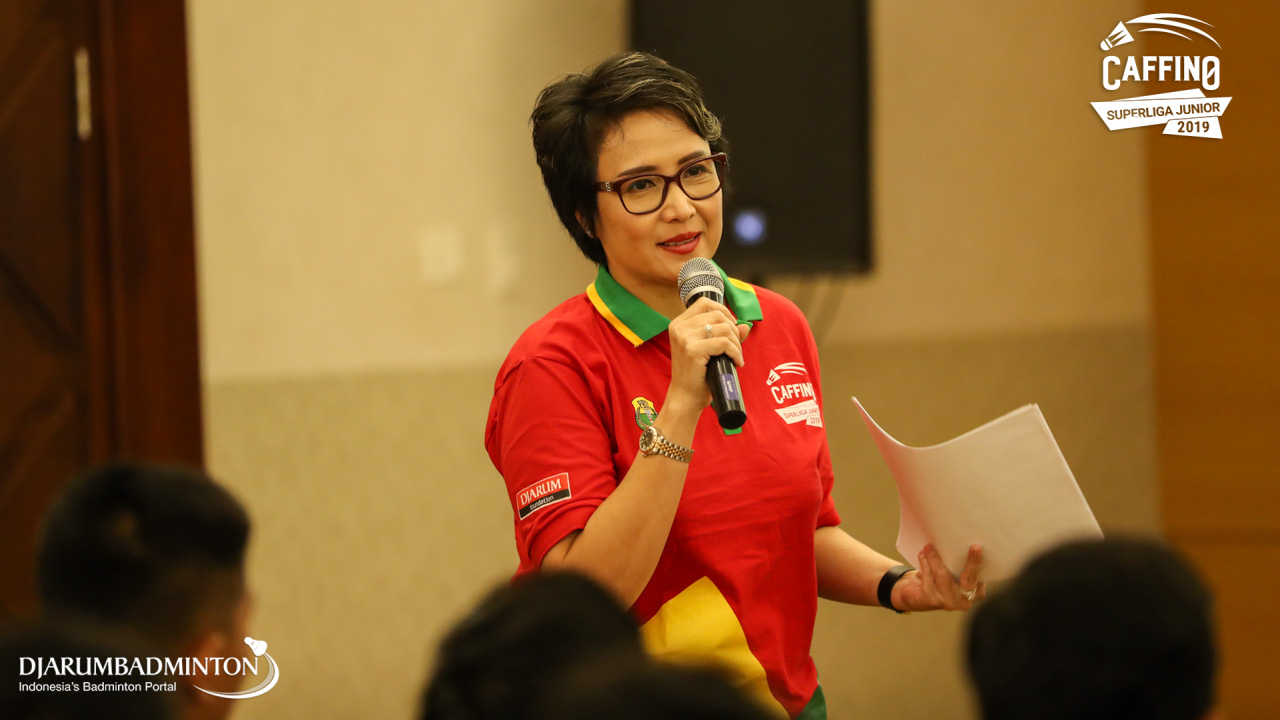 Yuni Kartika membuka acara Press Conerence Caffino Super Liga Junior 2019