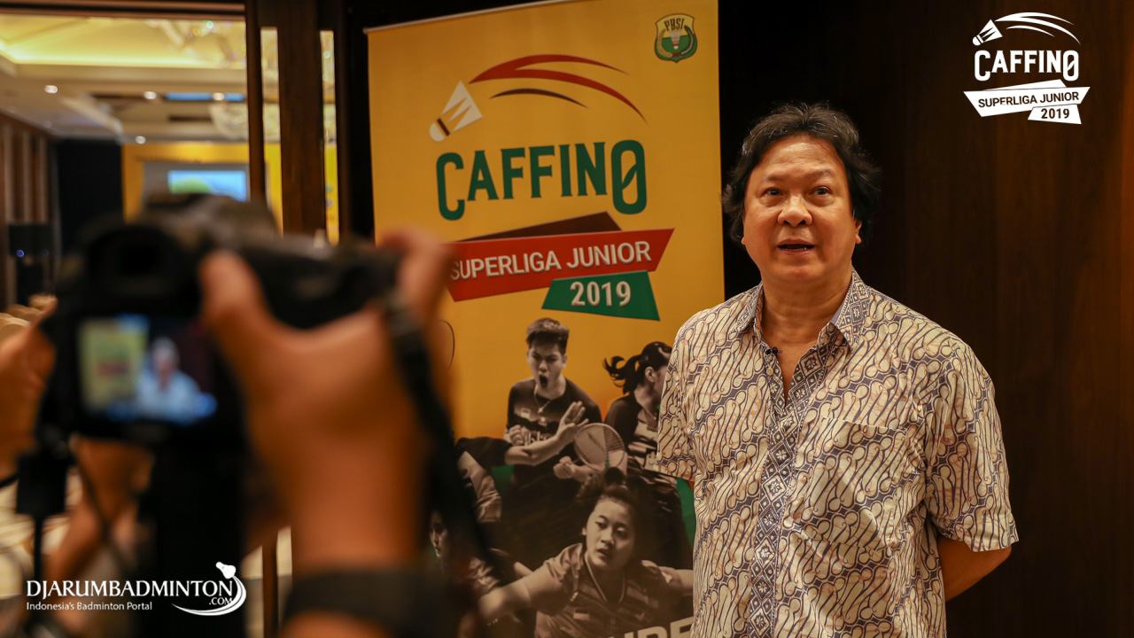 Liem Swie King saat menjawab wawancara