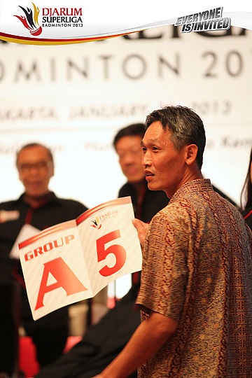 Manager PB Djarum Fung Permadi saat pengambilan undian drawing Djarum Superliga Badminton 2013