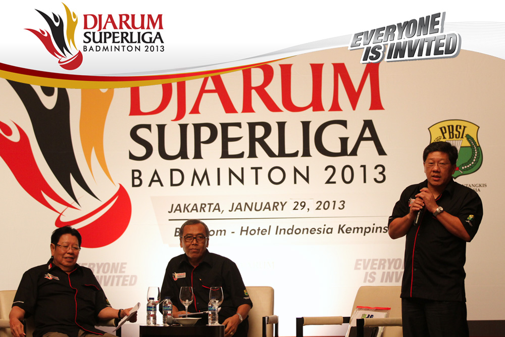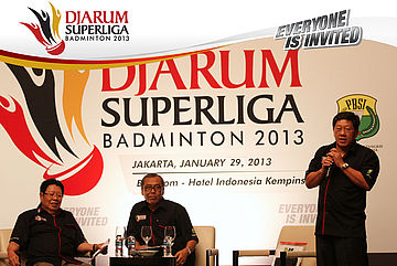 Perwakilan PB Mutiara saat pengambilan undian drawing Djarum Superliga Badminton 2013