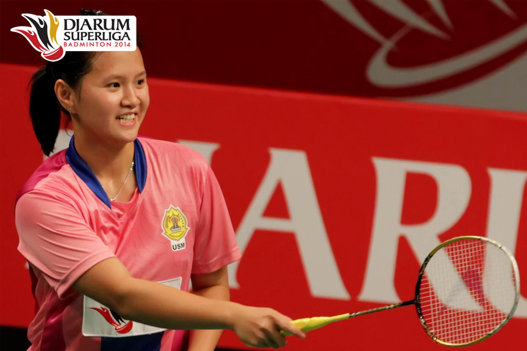 Komala Dewi (USM Semarang) tersenyum ditengah permainannya.