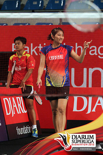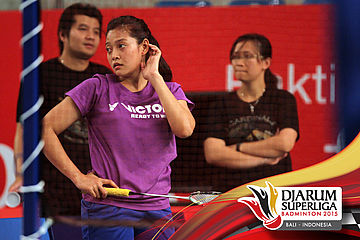 Gebby Ristiyani (Mutiara Cardinal) saat menunggu giliran untuk berlatih.