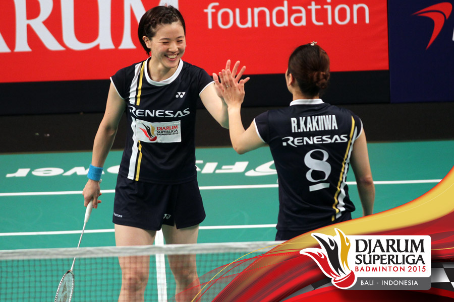 Kekompakan Miyuki Maeda/Reika Kakiiwa (Renesas Jepang) di lapangan.
