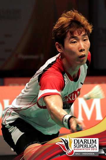 Son Wan Ho (Djarum Kudus) bersiap melepaskan serve.