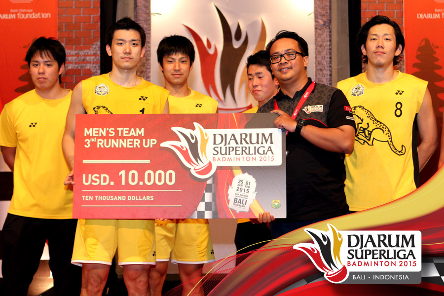 Juara ke empat putra Djarum Superliga 2015, Tonami Jepang mendapatkan hadiah uang senilai USD 10.000.