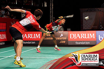 Kekompakan Fajar Alfian/Lee Yong Dae (Musica Champion) dilapangan pertandingan.