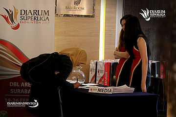 Suasana saat press conference acara Djarum Superliga Badminton 2017.