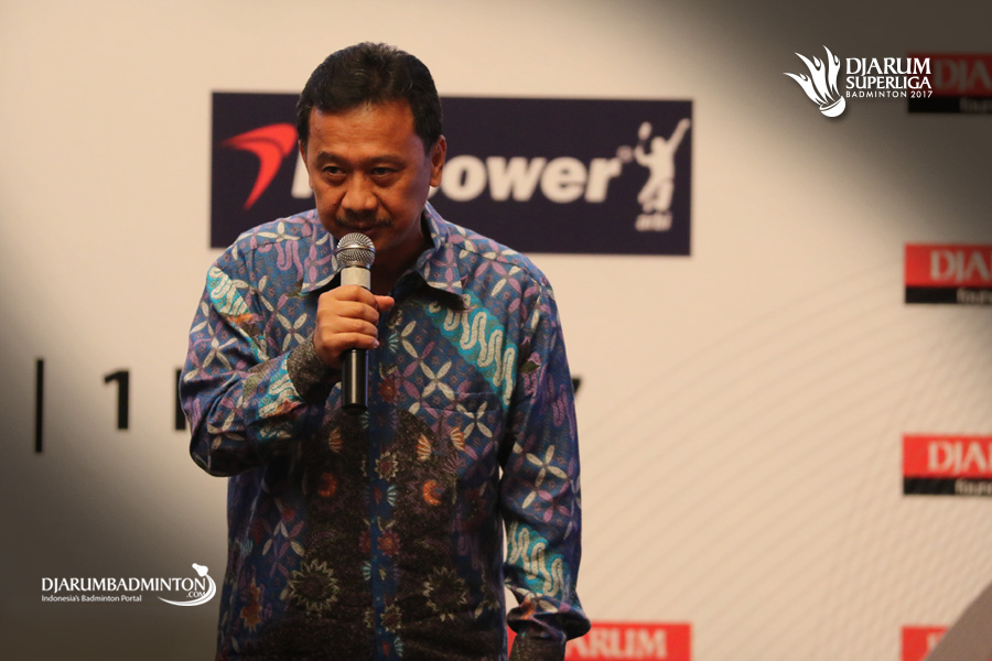 Bambang Roedyanto selaku Event Manager Djarum Superliga Badminton 2017 memberikan sambutan.