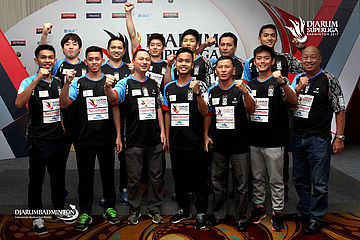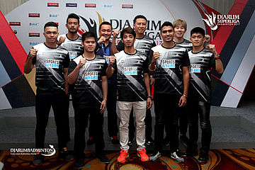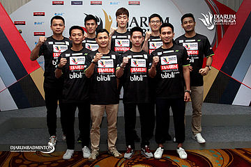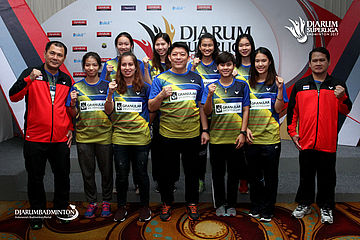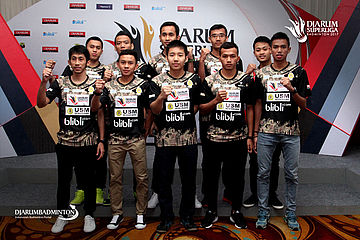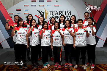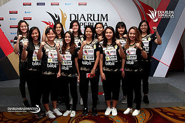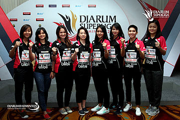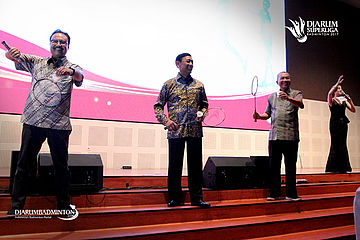 Wakil Gubernur Jawa Timur, Ketua Umum PP PBSI dan Direktur Superliga bersiap membuka Djarum Superliga Badminton 2017 secara simbolis.