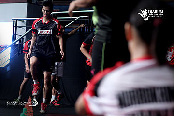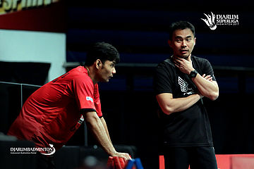 Berry Aggriawan dan David Pohan (Djarum Kudus) berbincang saat berlatih.