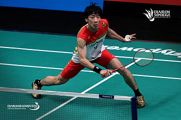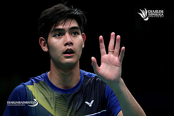 Pannawit Thongnuam (Granular Thailand) mengembalikan shuttlecock.