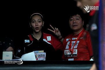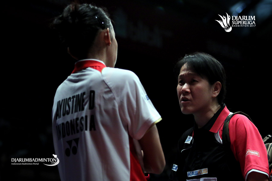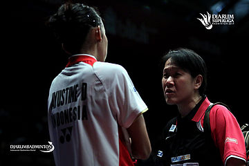 Minarti Timur saat memberikan arahan kepada Dinar Dyah Ayustine (PB Djarum).