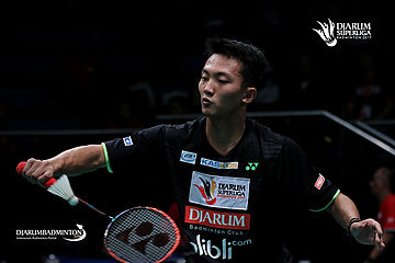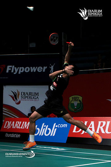 Ihsan Maulana Mustofa (PB Djarum) melepaskan serangan.