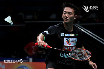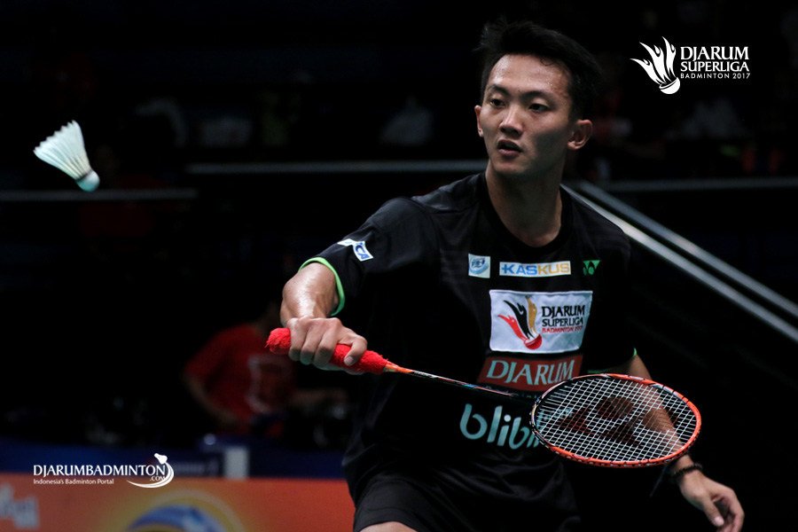 Ihsan Maulana Mustofa (PB Djarum) menyambut pengembalian.