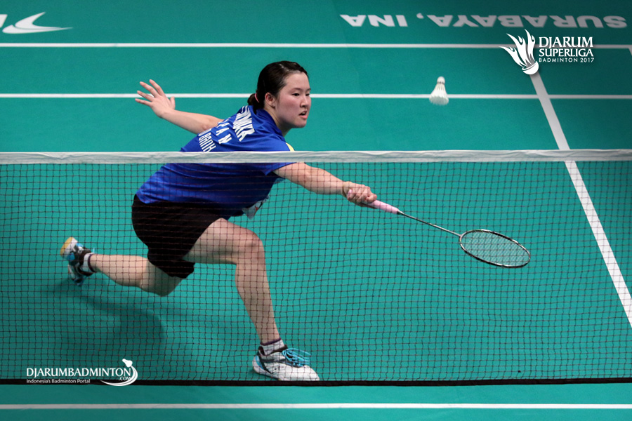 Miku Yasuda (PB Tjakrindo Masters) menghadang serangan.