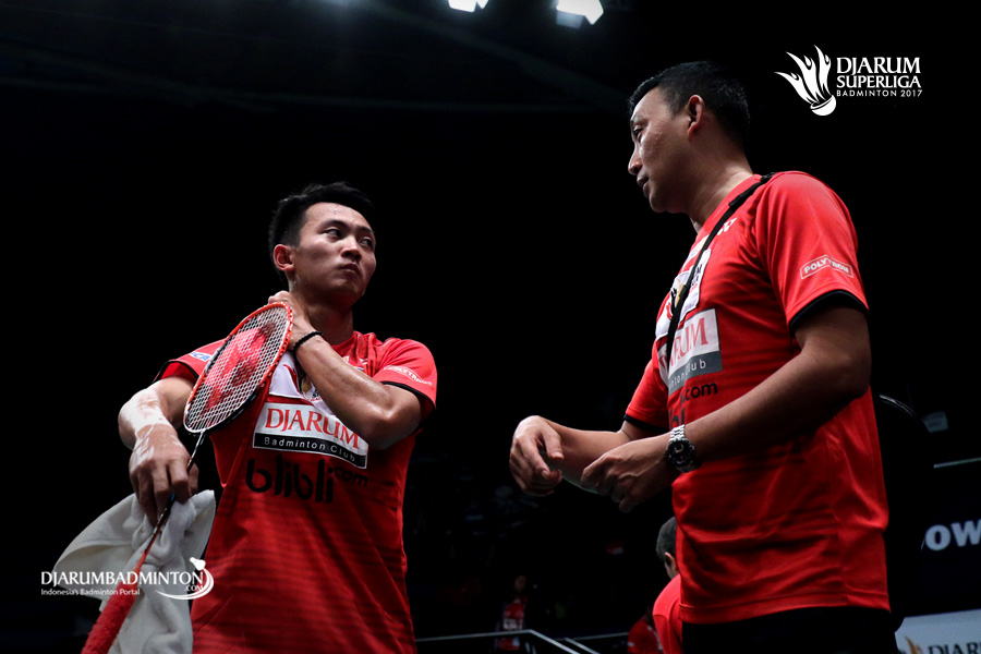 Ihsan Maulana Mustofa (PB Djarum) mendapatkan pengarahan dari Imam Tomori.