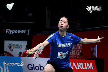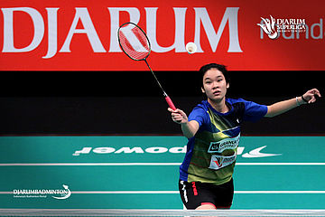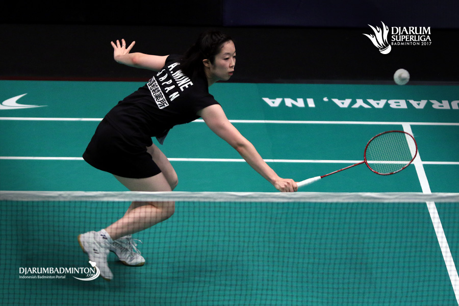 Kawakami Saena (Hokuto Bank Jepang) mengembalikan shuttlecock.