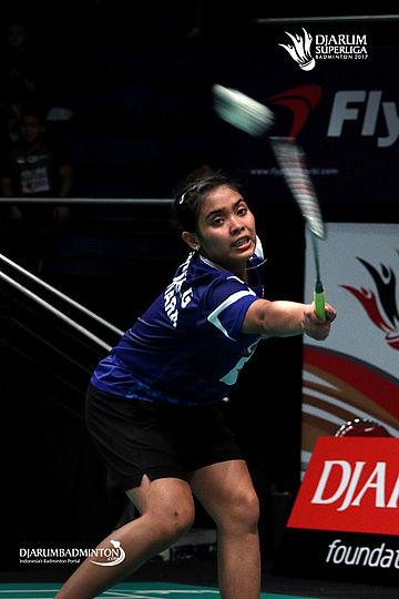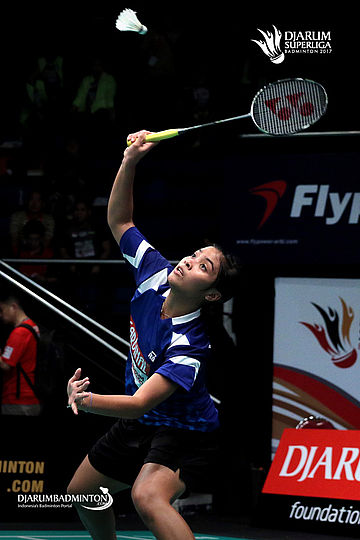 Gregoria Mariska (PB Mutiara Cardinal) bersiap menyambut pengembalian.