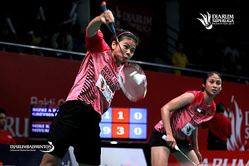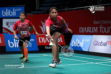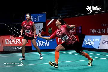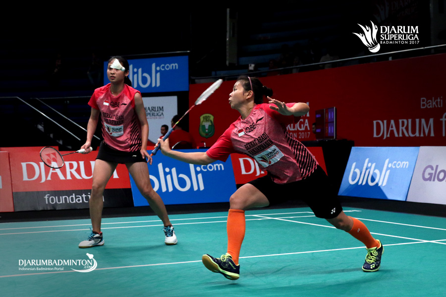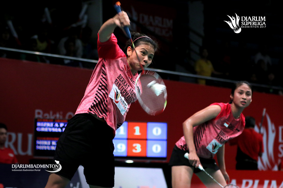 Greysia Polii/Rizki Amelia (PB Berkat Abadi) menyambut pengembalian.